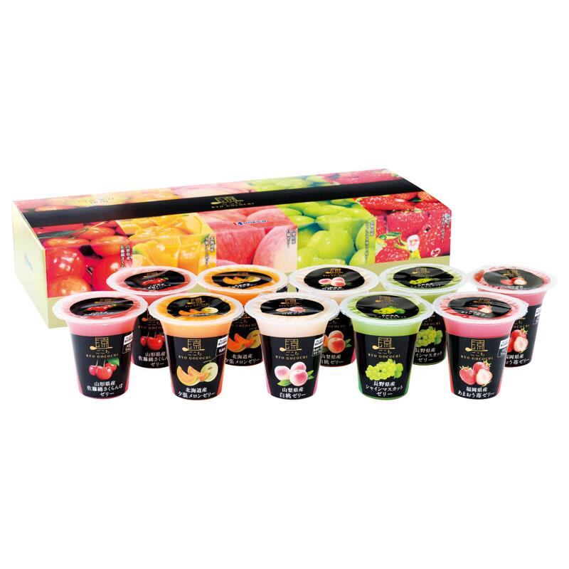 商品内容:北海道産夕張メロンゼリー(125g)・福岡県産あまおう苺ゼリー(125g)・山梨県産白桃ゼリー(125g)・長野県産シャインマスカットゼリー(125g)・山形県産佐藤錦さくらんぼゼリー(125g)×各2