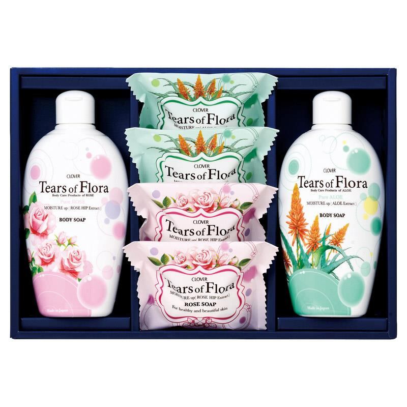 商品内容:アロエ石鹸(70g)・ローズ石鹸(70g)×各2、アロエボディソープ(250ml)・ローズボディソープ(250ml)×各1