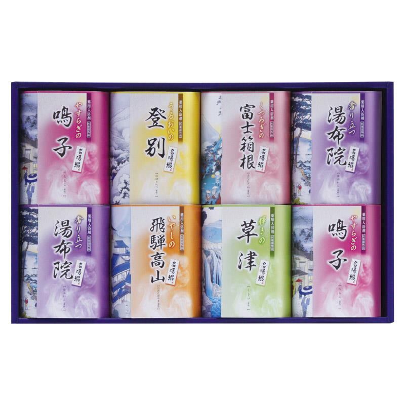 幅広い層に人気の名湯・秘湯をモチーフにした薬用入浴剤です。保湿成分(ケイ酸ナトリウム)配合でお肌しっとりおだやかな香り立ちのぼるギフトセットです。