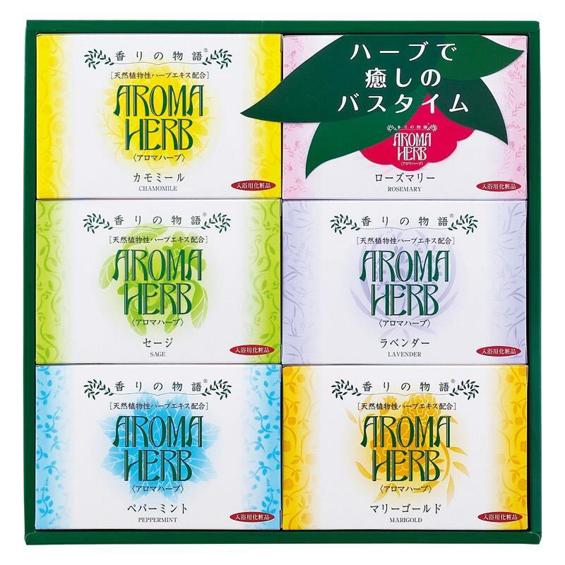 商品内容:ハーブエキス配合入浴料(カモミール・セージ・ローズマリー・ラベンダー・ペパーミント・マリーゴールド)(30g)×各3