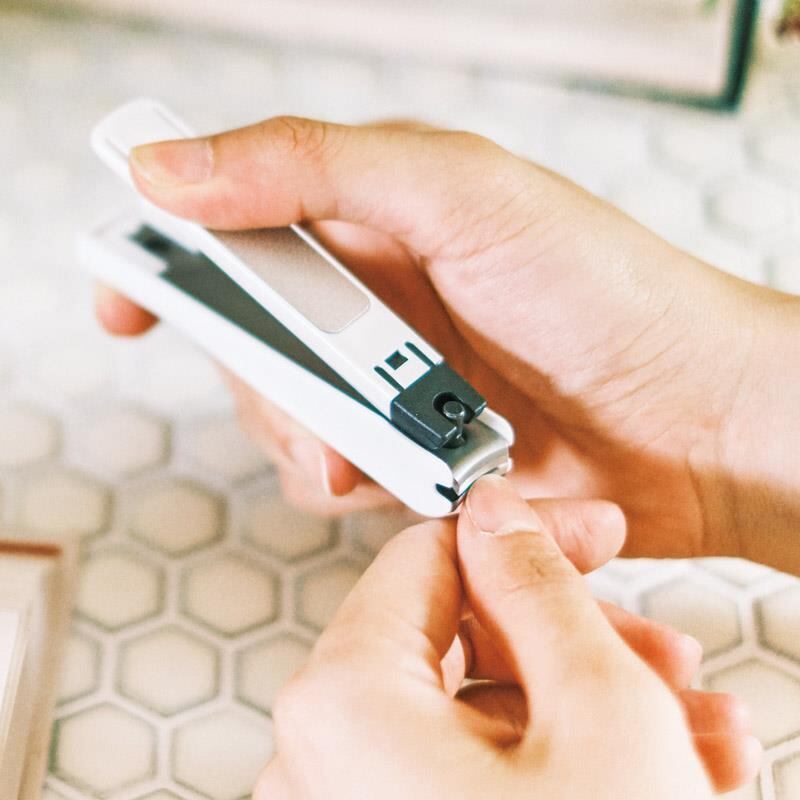 切った爪が飛び散らないストッパー付き。
