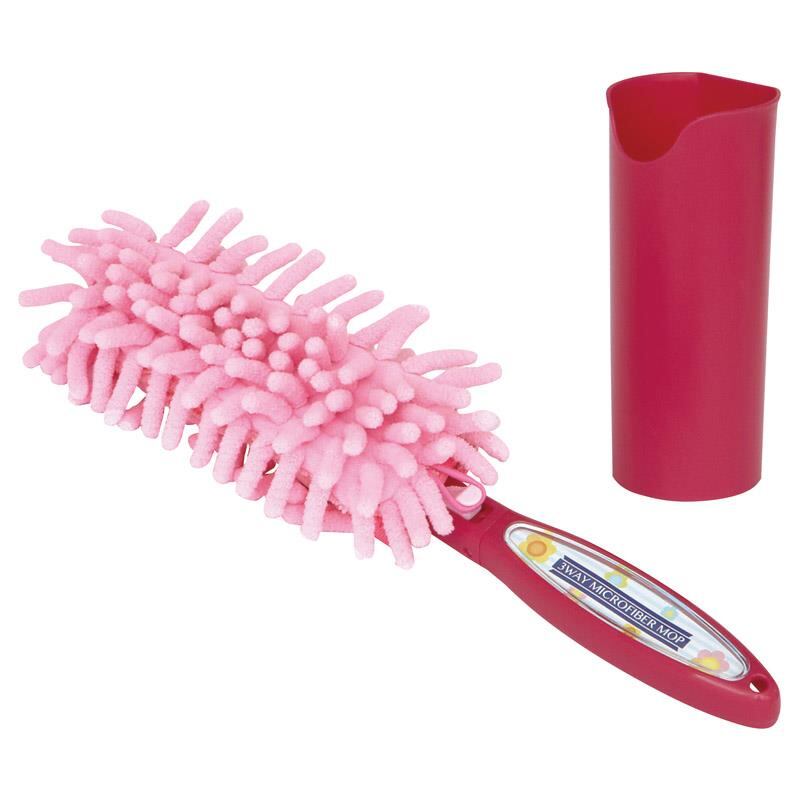 モップの角度が変えられ、あらゆる場所の掃除ができる!超極細繊維が細かいホコリをからめ取る。収納ケース付。洗って繰り返し使えて経済的。モップ部分の角度調節可能(360度・180度135度・90度)