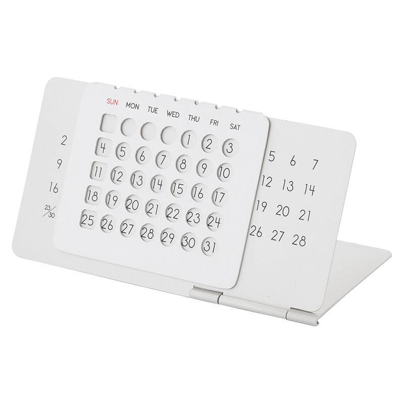 毎月スライドするだけで毎年使用できるアルミ万年カレンダー。